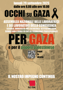 La FLC CGIL ai sensi del vigente CCNL del comparto Istruzione e Ricerca convoca un’assemblea sindacale della durata di 2 ore in orario di servizio per tutto il personale nel giorno Lunedì 29 settembre 2025 Dalle ore 8:00 alle ore 10:00